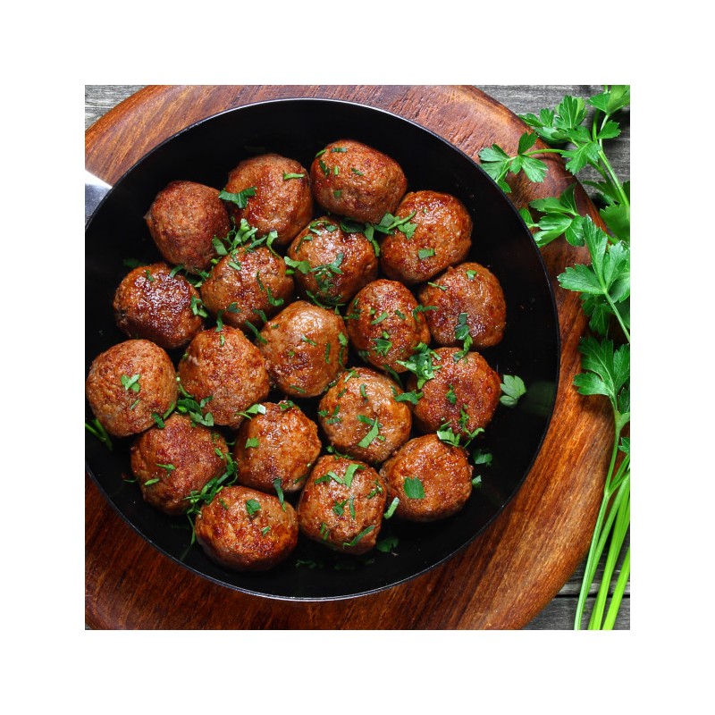 Boulettes de bœuf nature, conditionnés en sachet de 8 boulettes. Poids du sachet : 480g