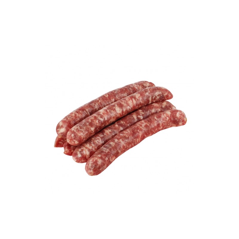 Saucisses de bœuf à l'oignon, conditionnés en sachet de 6 saucisses. Poids du sachet : 500g