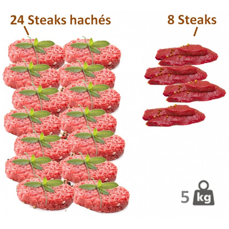 Un lot composé uniquement de steaks et de steaks hachés facile et rapide à cuisiner.