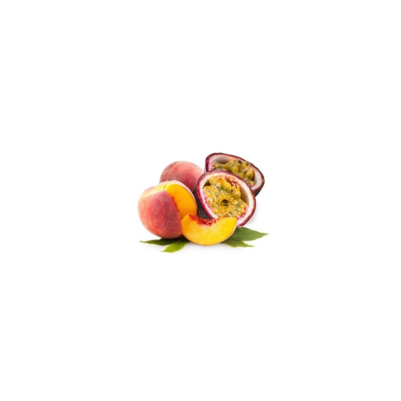 Un Pot de yaourt fermier sur lit de pêche/passion. Poids par pot => 125g